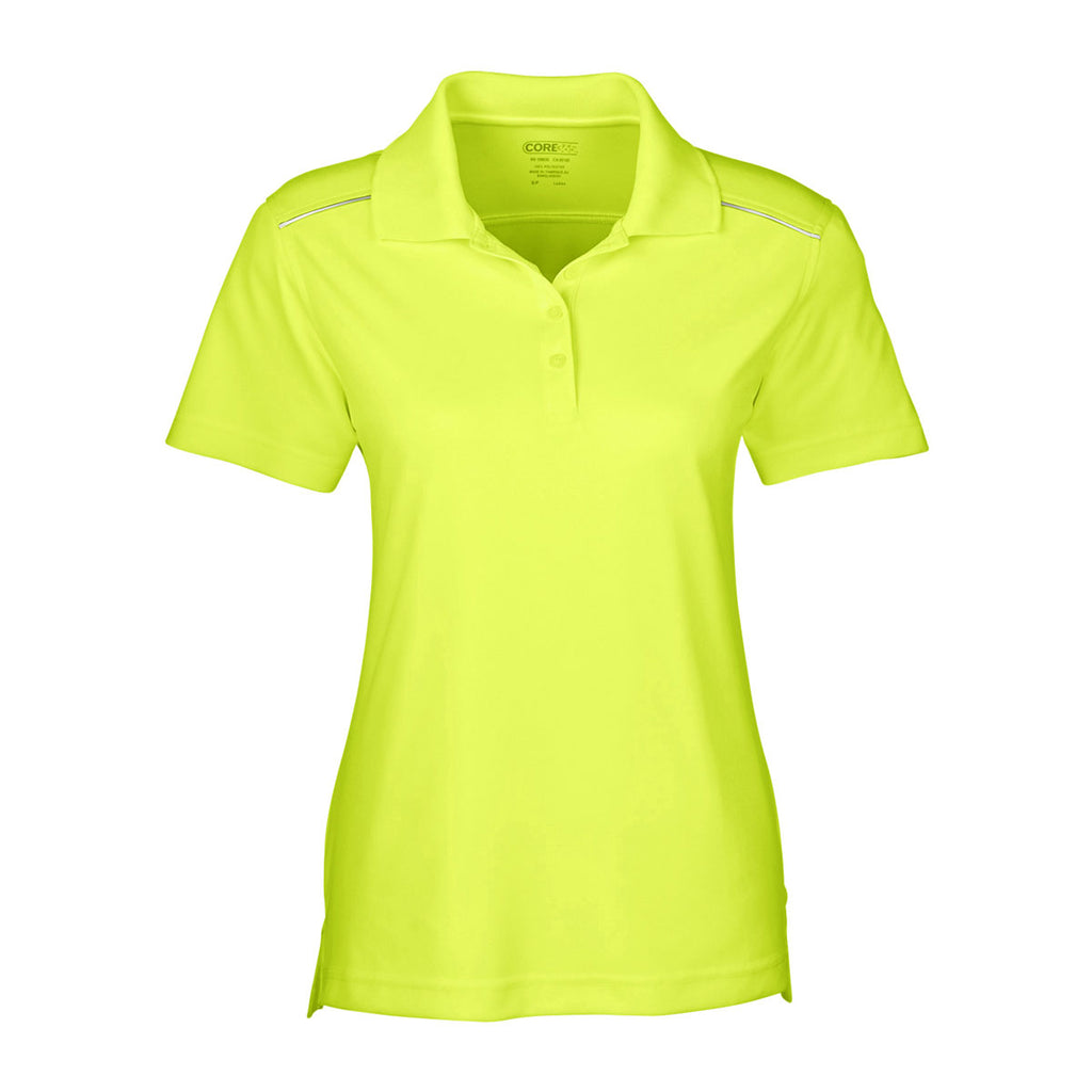 Looking for women's tactical performance polo? Grab Core 365 Women's Safety Yellow Radiant Performance Pique Polo that is customizable with your company's logo for branding and corporate usage. Cut to a woman's shape, this polo features matching flat knit collar and heat-sealed label. Reflective piping on shoulders enhances visibility in low light. Side slits make for freedom of movement. Equipped with moisture-wicking, anti-microbial, and UV protection properties for ultimate comfort and function on duty. Use our quick and reliable customization service to make this polo part of your team's uniform.Corresponding Men's Style: Core 365 Men's Safety Yellow Radiant Performance Pique Polo