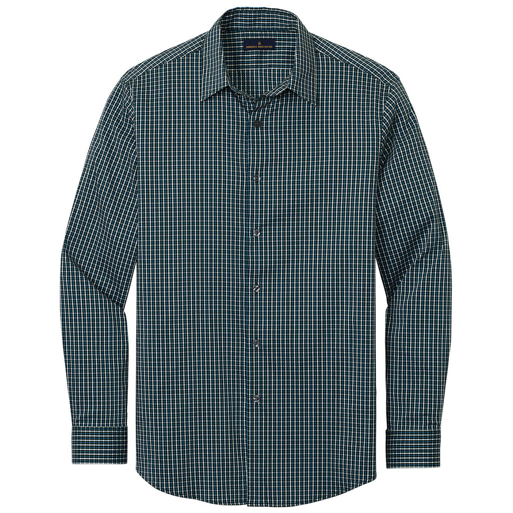 Brooks Brothers Men's Dark Pine Multi Check Tech Stretch Patterned Shirt with a custom logo will turn heads with the large checkered pattern that is sleek and stylish. The lightweight button-down is ideal for the office with a button-down collar, and adjustable cuffs. Great piece to complete any outfit. This is a must-have for every corporate wardrobe. Place an order today.