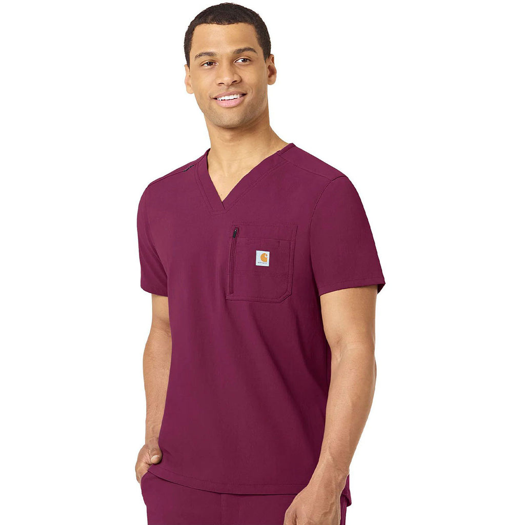 Carhartt Men's Wine Two-Pocket Modern Fit Tuck-In V-Neck Top