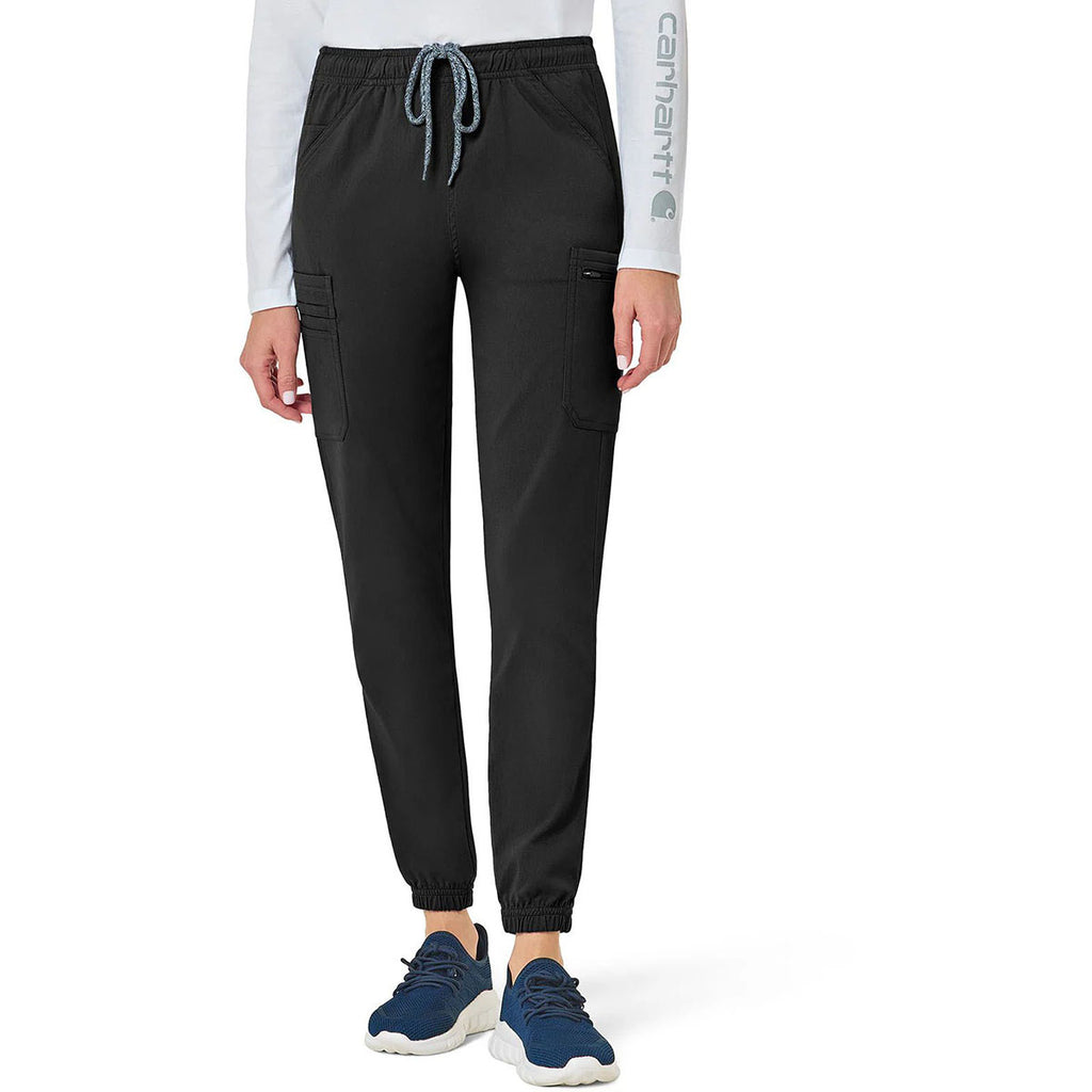 Carhartt Women's Black Nine-Pocket Cargo Jogger Pant with a custom logo is great for those days when you are busy but want to be comfortable. This multi-pocket pant will keep everything you need at hand while also being water-repellent and highly durable. Perfect for working outdoors, working with patients, or working with children.Highlights