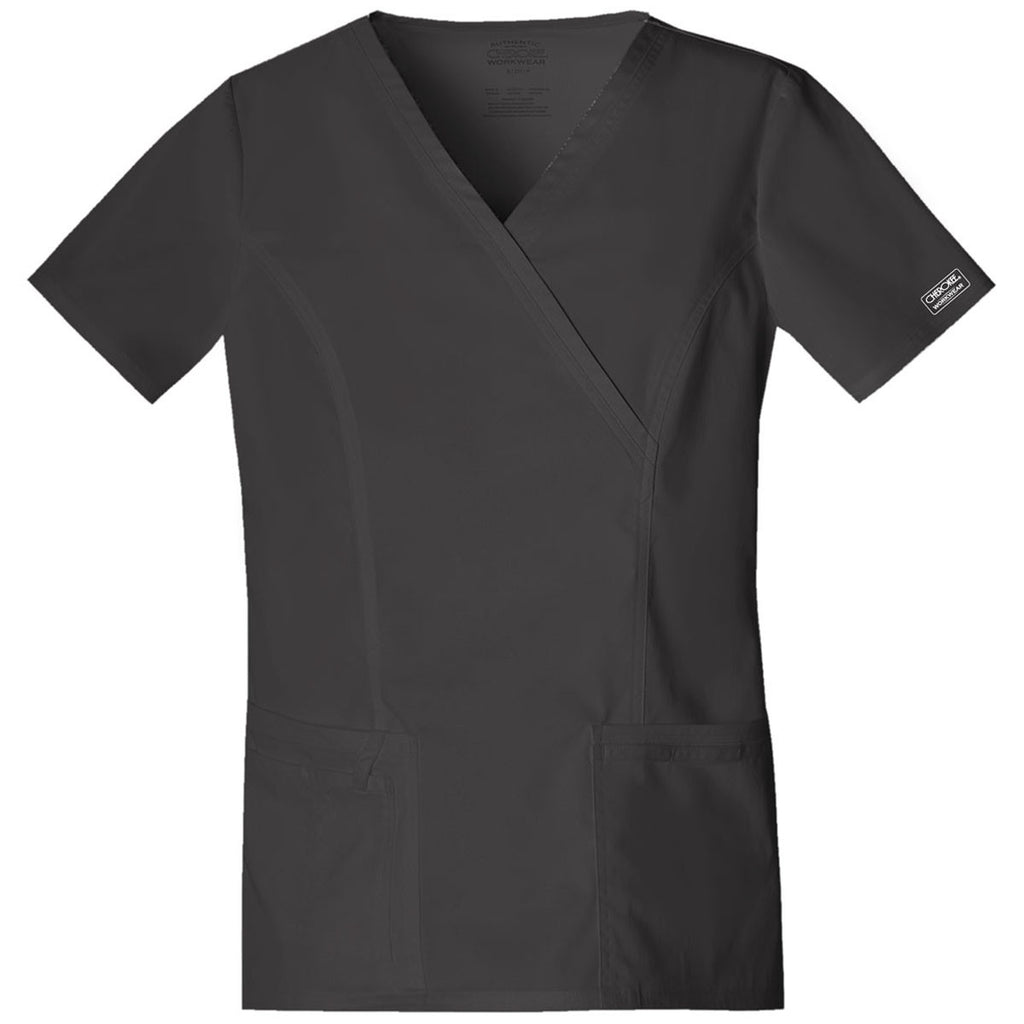 Let's face it: workwear isn't always ideal. And getting work done in an effective, efficient top while feeling good and comfortable isn't always easy. With this Cherokee Workwear Women's Black Premium Core Stretch Mock Wrap Top...it's a breeze.Highlights