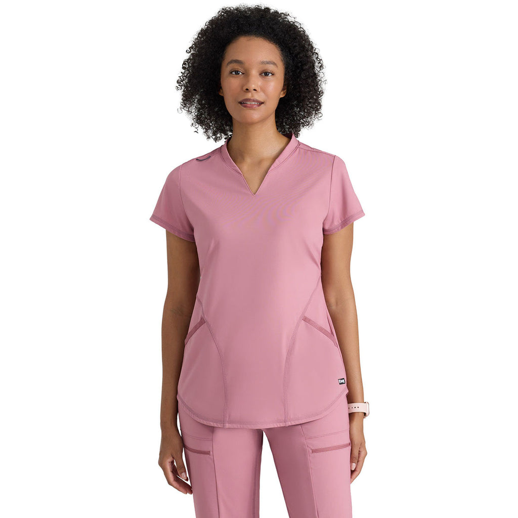 Look amazing in a custom Grey's Anatomy Women's Canyon Pink Two Pocket V-Neck Define Top that blends style with functionality. The V-notch neckline with cap sleeves is comfortable and durable for all-day wear. With built-in stretch, antimicrobial, and anti-odor protection, this top will stand up to a hard day at work or play.Highlights