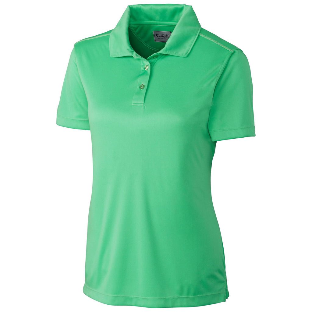 Moisture wicking technology makes the corporate logoed Clique Women's Apple Green Parma Polo the ultimate gift to hand out before the next company sponsored golf tournament. Wear the chic short sleeve shirt on the most humid days of the year and never have to worry about perspiration causing discomfort. Cover stitch detail ensure the versatile polo offers long lasting durability. Rugged 100% polyester interlock resists rips and tears to give you a go to polo for years to come. Add your company logo on the large embroidery area for expanding awareness of your brand at business seminars and conferences.Corresponding Men's Style: Clique Men's Apple Green S/S Parma Polo