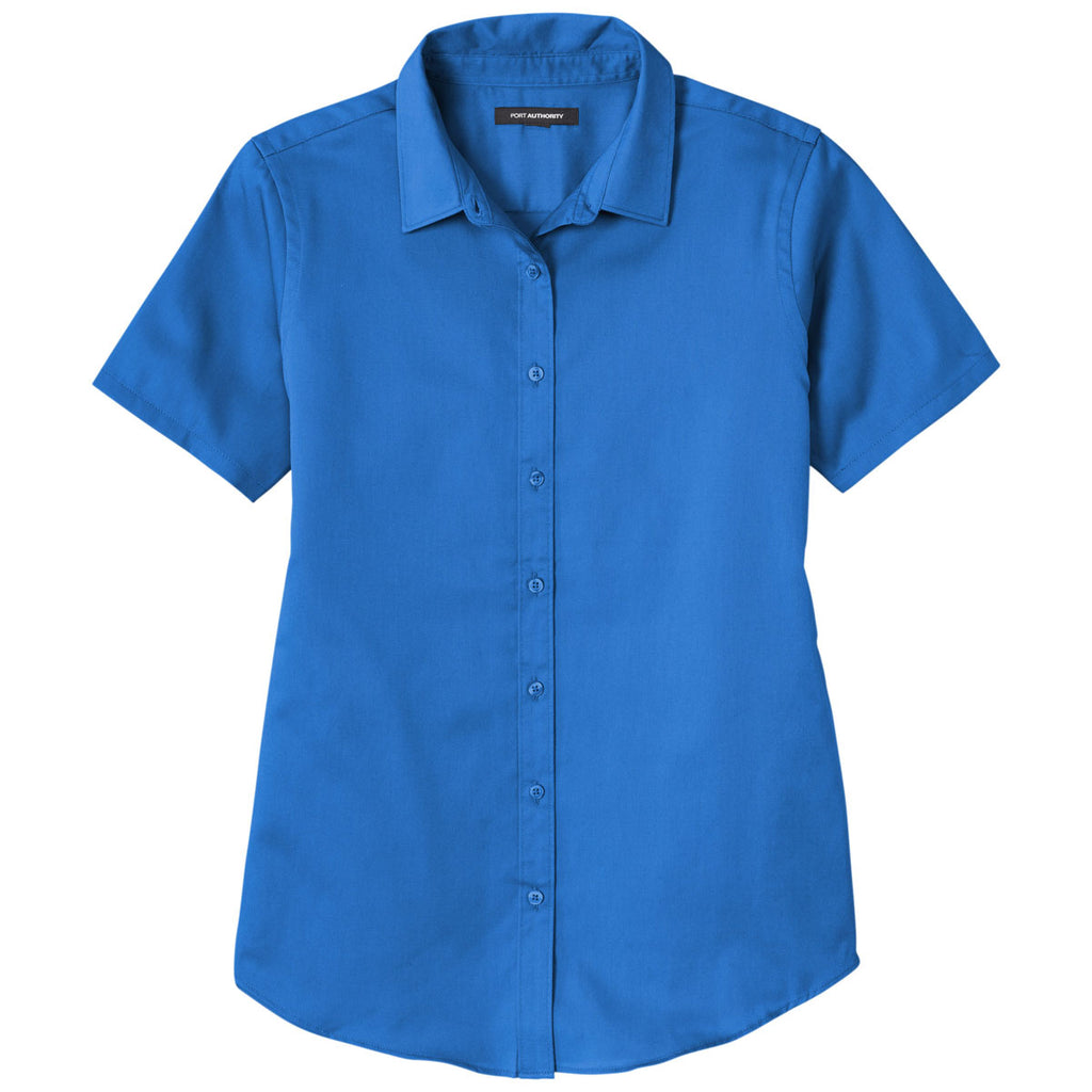 Port Authority Women's Strong Blue Short Sleeve SuperPro React Twill Shirt