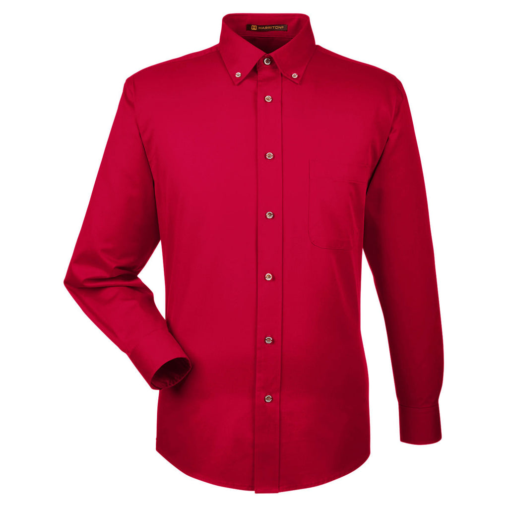 Harriton Men's Red Easy Blend Long-Sleeve Twill Shirt with Stain-Release