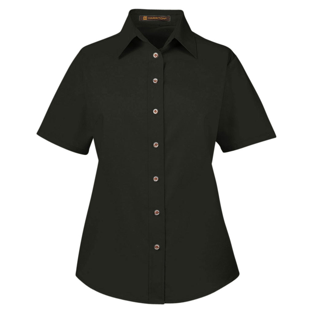 Harriton Women's Black Easy Blend Short-Sleeve Twill Shirt with Stain-Release