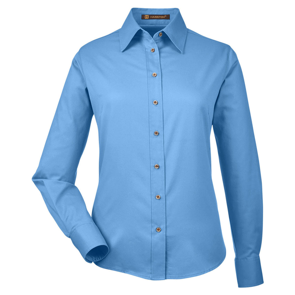 Harriton Women's Light College Blue Easy Blend Long-Sleeve Twill Shirt with Stain-Release