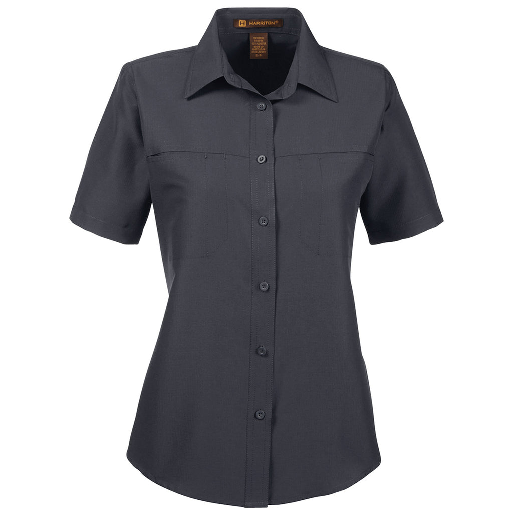 Harriton Women's Dark Charcoal Key West Short-Sleeve Performance Staff Shirt
