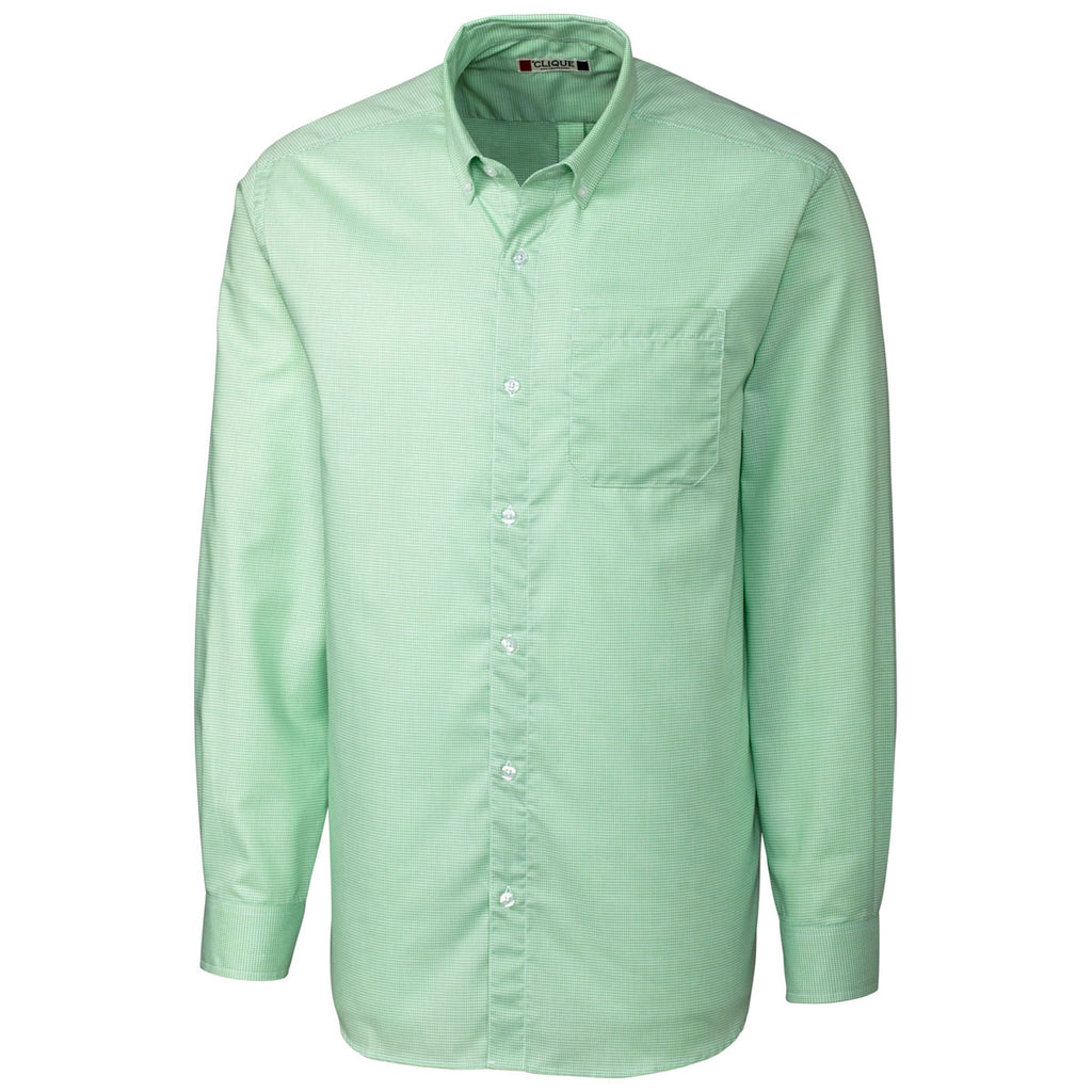 Hand out the perfect employee uniform to your team by ordering the Clique Men's Sea Green/White Long Sleeve Granna Stain Resistant Houndstooth Shirt. Do you remember the embarrassment of wearing company apparel that had the morning coffee prominently displayed on the front of the fabric? The Houndstooth long sleeve shirt prevents stains from diminishing your professional appearance. With a texture weave, the cotton and polyester shirt weaves an attractive appearance that will get you noticed at civic events. Take advantage of the attention by adding your company logo on the embroidery area. With a custom logo, you reach more customer prospects at sales conferences.Corresponding Women's Style:Clique Women's Sea Green/White Long Sleeve Granna Stain Resistant Houndstooth Shirt
