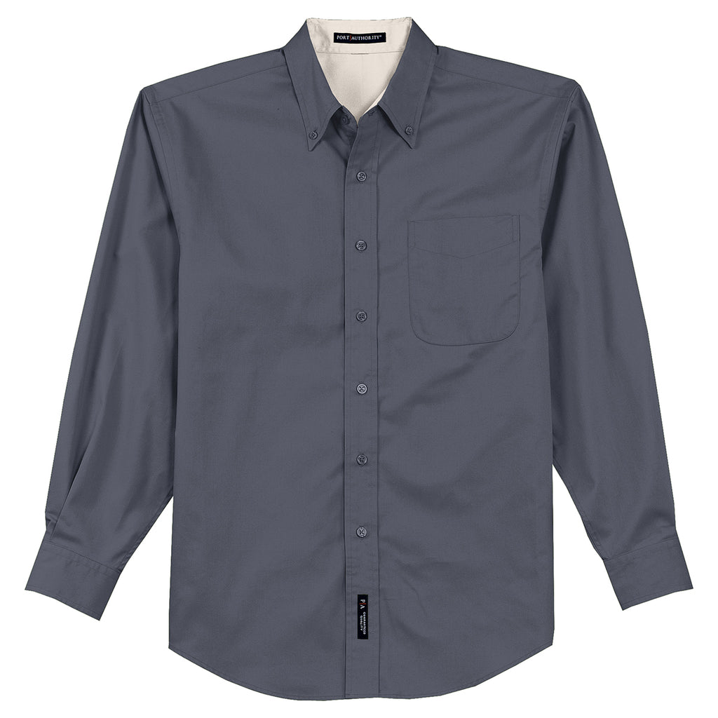 Port Authority Men's Steel Grey/Light Stone Extended Size Long Sleeve Easy Care Shirt