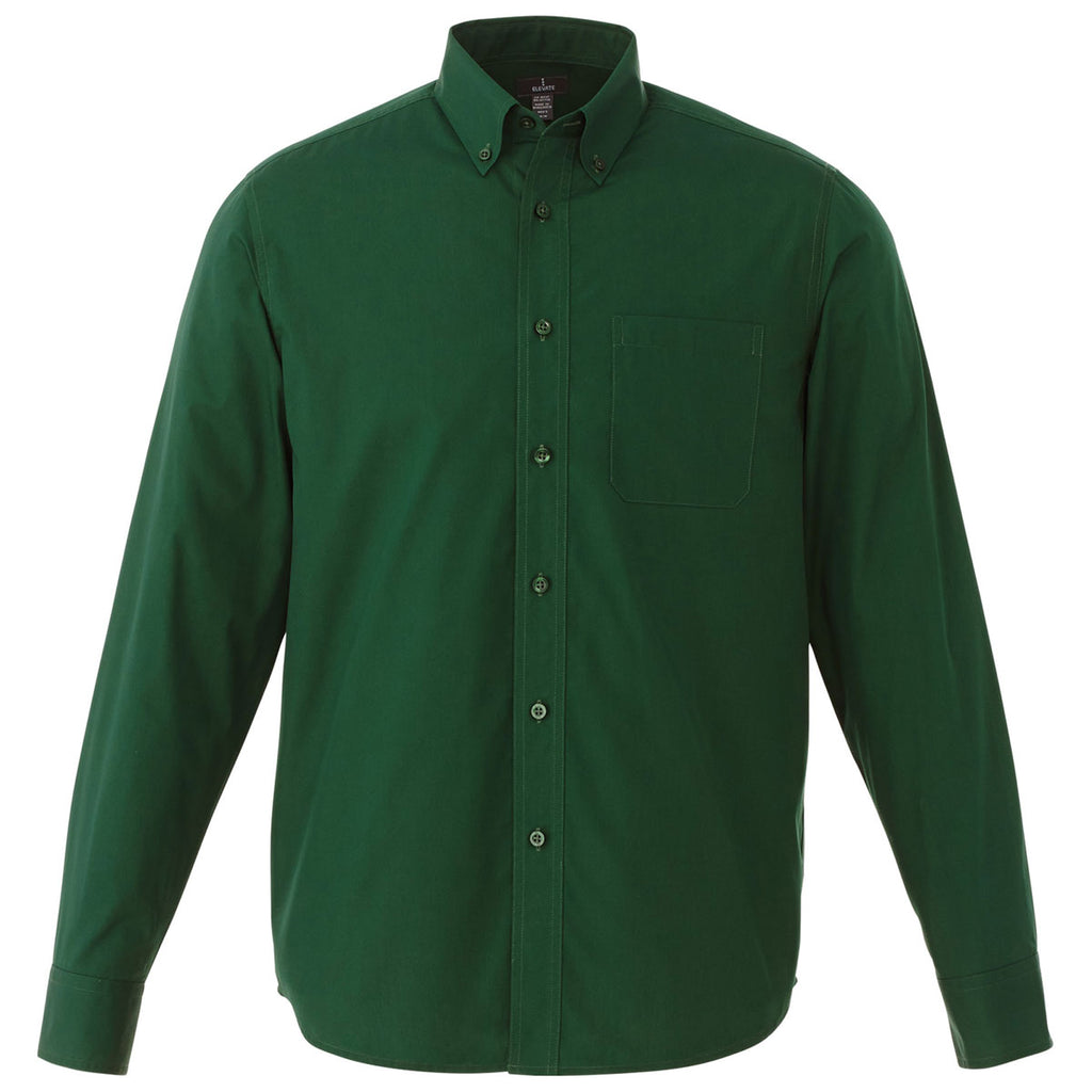 Long sleeve shirts are always warm choice for cool offices and convenient for branding with a custom corporate logo. The Elevate Men's Forest Green Preston Long Sleeve Shirt perfect match to suit your chilly office needs. It can be an office shirt or part of a company uniform. On the other side, it is a universal shirt that can be appropriate for every situation. This is a 65% polyester, 35% cotton poplin woven fabric blend meaning it is easy to care for, convenient for a busy daily life. It is available in a variety of colors and one of them will meet your company's needs.Corresponding Women's Style: Elevate Women's Forest Green Preston Long Sleeve Shirt