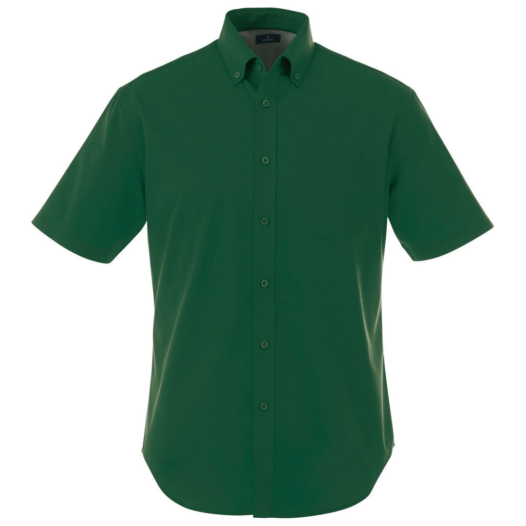 The Elevate Men's Forest Green Stirling Short Sleeve Shirt with your custom logo will make any man look sharp and classy. Its classic look never goes out of style. Give your customers a gift they will use for years to come. It features a left-chest pocket and center-back box pleat. It comes in many colors, giving you many options to choose from to fit your brand. Your employees will gladly wear this classic shirt, so make sure to include it in your next giveaway! It is ideal for warm summer days when they have to stay cool. Whether they are going to work or driving their kids to school, they will advertise your brand.Corresponding Women's Style: Elevate Women's Forest Green Stirling Short Sleeve Shirt