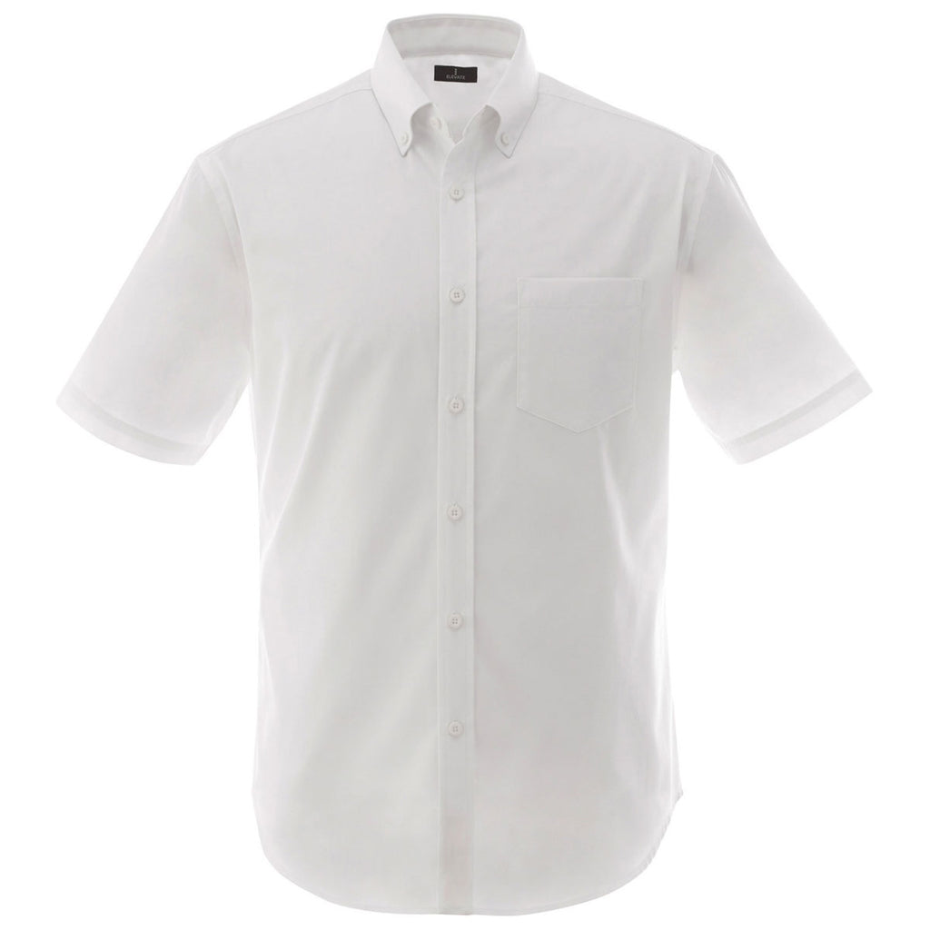 The Elevate Men's White Stirling Short Sleeve Shirt with your custom logo will make any man look sharp and classy. Its classic look never goes out of style. Give your customers a gift they will use for years to come. It features a left-chest pocket and center-back box pleat. It comes in many colors, giving you many options to choose from to fit your brand. Your employees will gladly wear this classic shirt, so make sure to include it in your next giveaway! It is ideal for warm summer days when they have to stay cool. Whether they are going to work or driving their kids to school, they will advertise your brand.Corresponding Women's Style: Elevate Women's White Stirling Short Sleeve Shirt