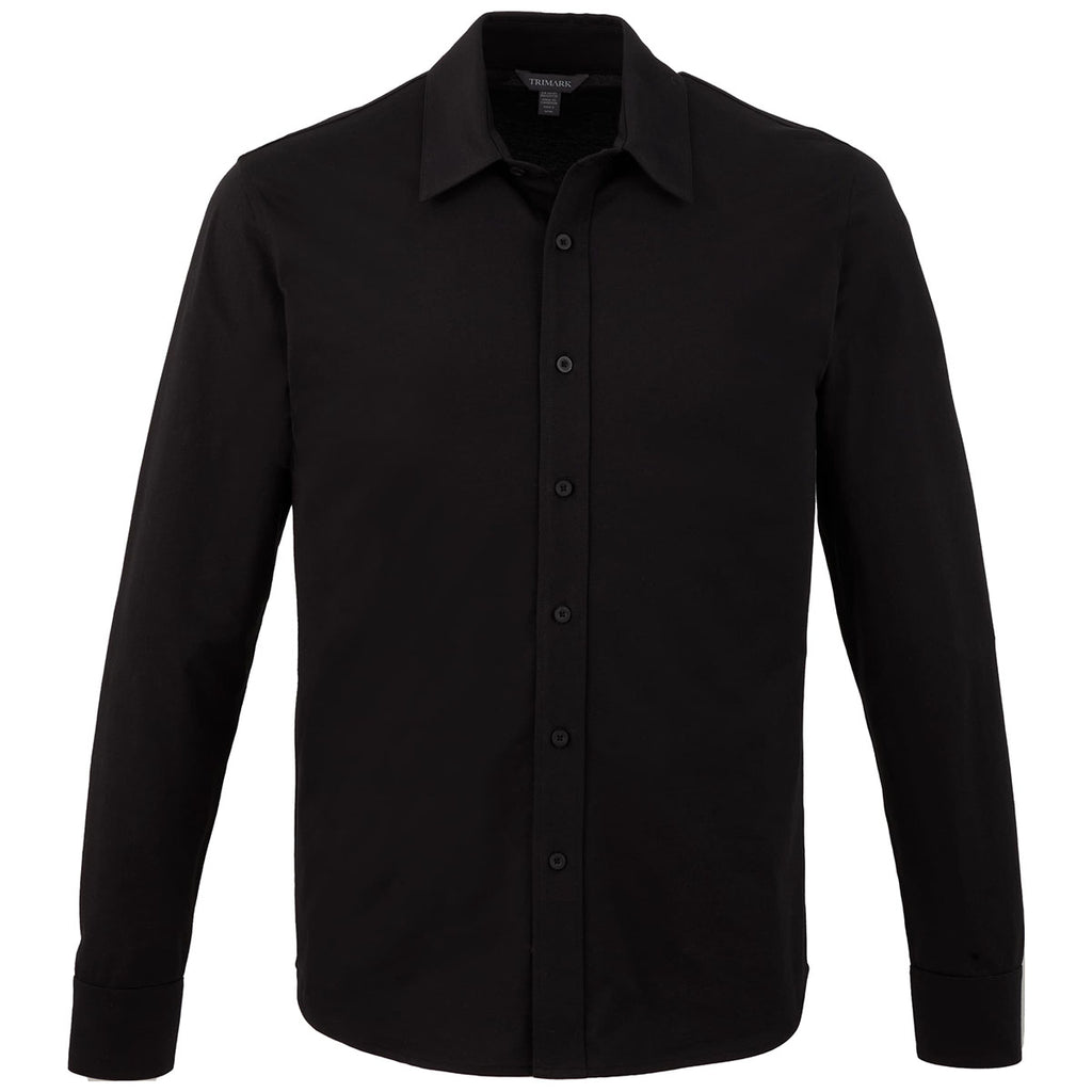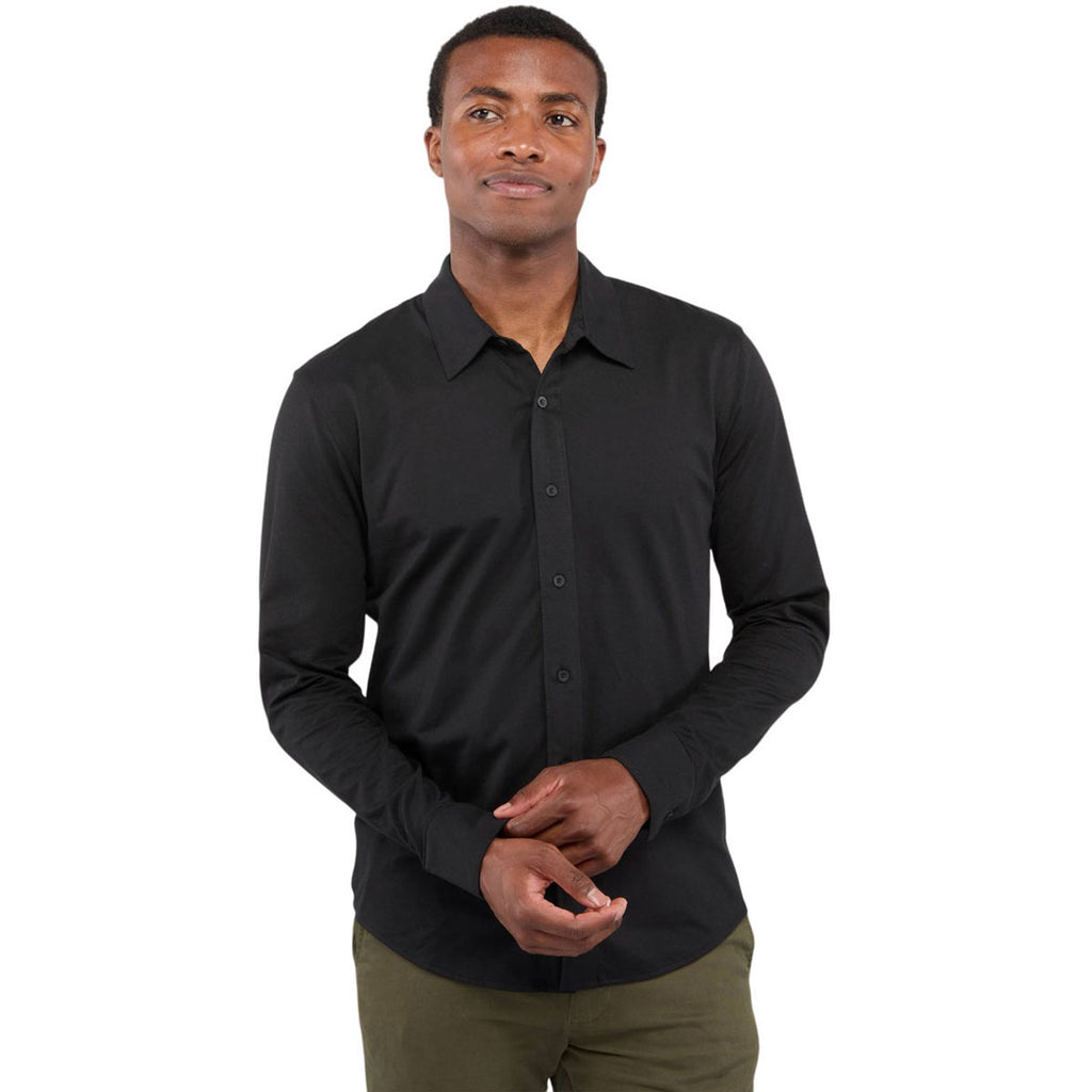 Elevate Men's Black TATRA Eco Knit Long Sleeve Button Up Shirt