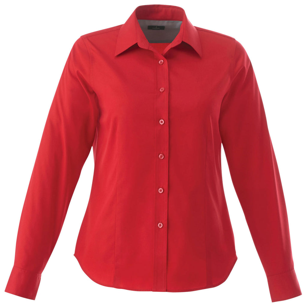 Whether you want a new uniform for your employees or just a present for them, the Elevate Women's Team Red Wilshire Long Sleeve Shirt branded with your custom logo is an ideal choice. It has shaped seams and a tapered waist for a more flattering fit. It is also a decoration-friendly design! It is also available in wide range of colors, so you can choose the one that perfectly matches your company logo. Whenever your employees want to look sharp, they will reach for the Elevate Women's Team Red Wilshire Long Sleeve Shirt. Advertise your brand in a modern way. Choose this high-quality shirt for your next corporate giveaway.Corresponding Men's Style: Elevate Men's Team Red Wilshire Long Sleeve Shirt
