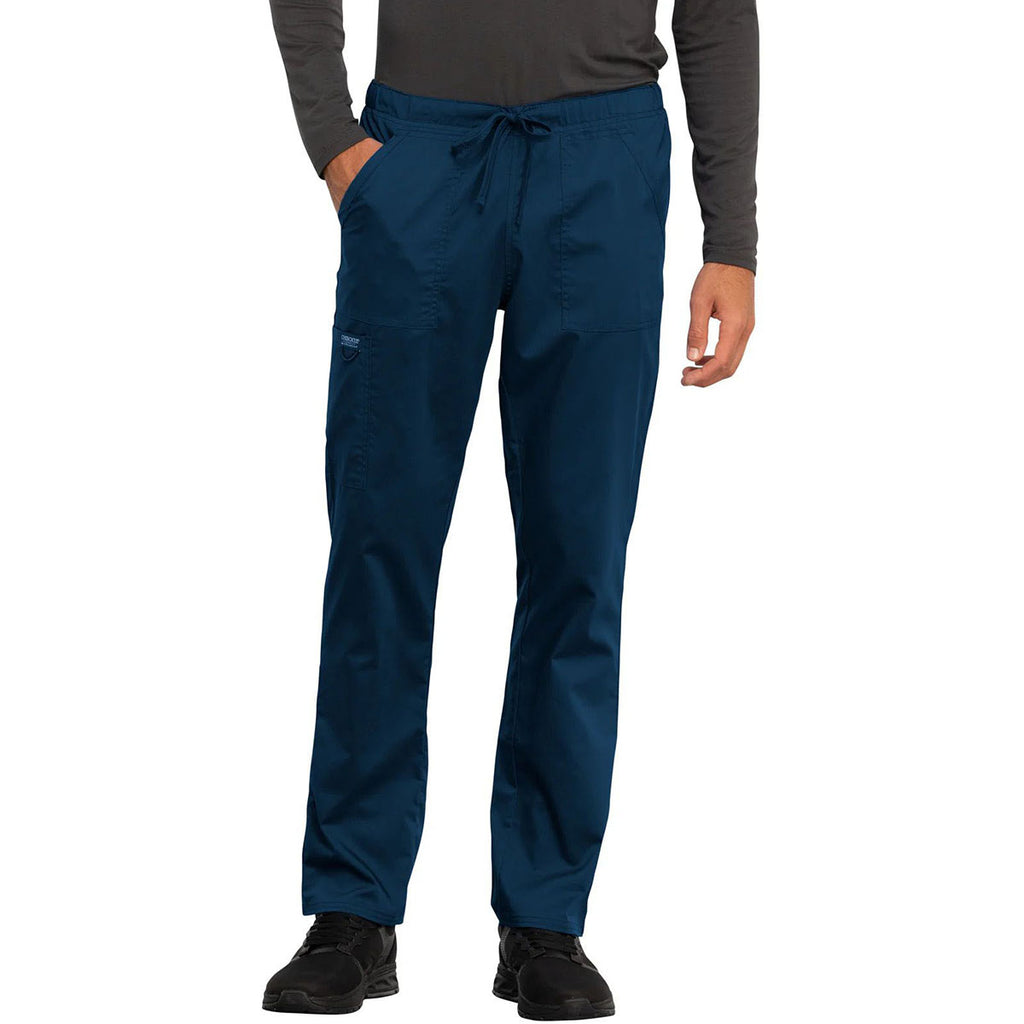 Cherokee Unisex Navy 4-Pocket Tapered Leg Drawstring Pant with a corporate logo is a versatile option for work and play. The modern fitting pant is mid-rise with a functional drawstring and elastic waistband. With four total pockets, you can easily carry everything you need as you head to work, enjoy the outdoors, or just hang with friends.Highlights