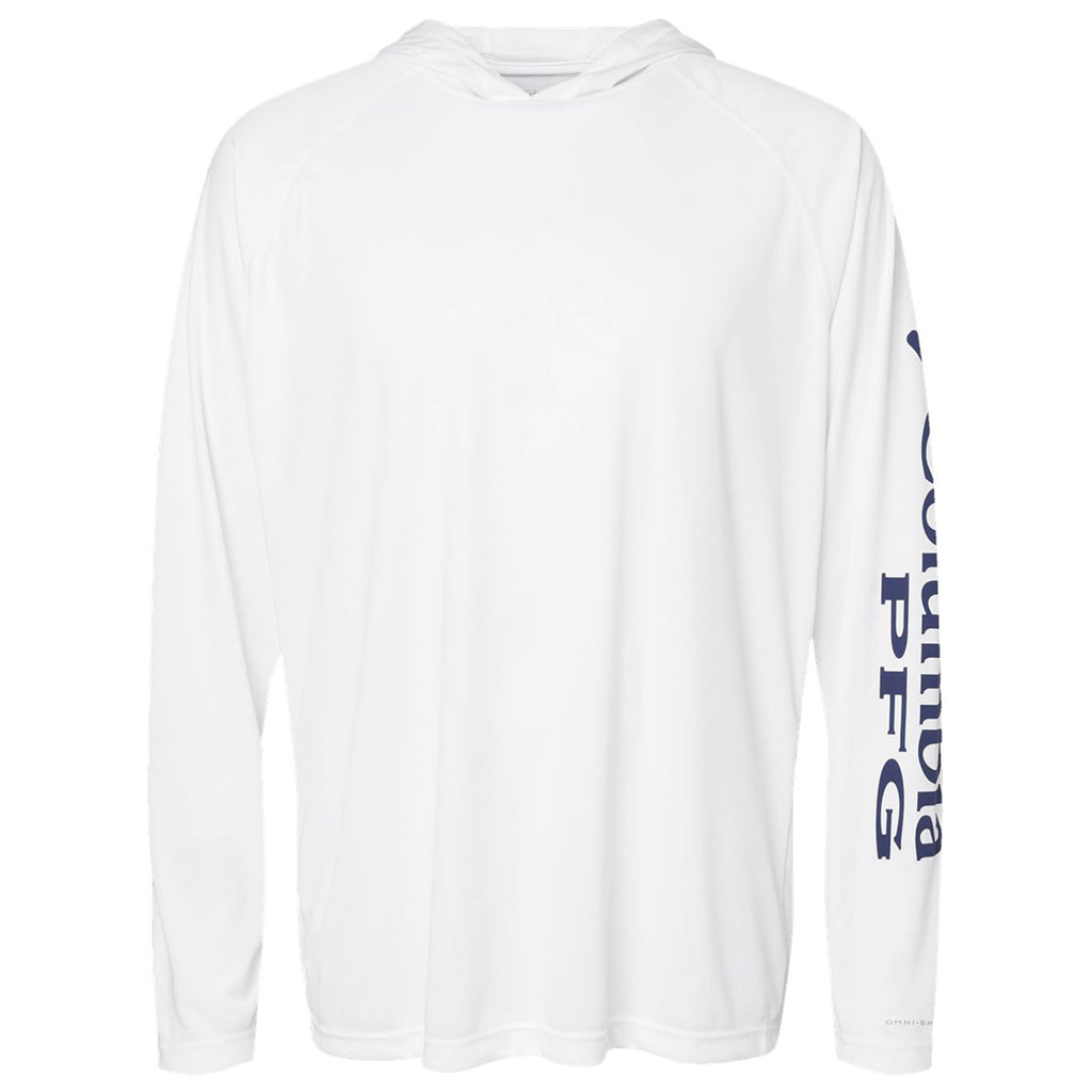 Columbia Men's White/Nightshade PFG Terminal Tackle Hooded Long Sleeve T-Shirt