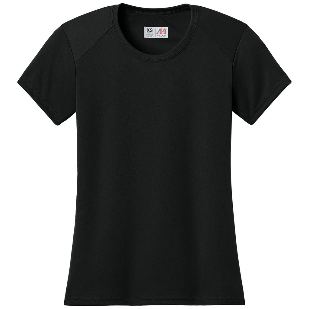 A4 Women's Black Cooling Performance Short Sleeve Tee