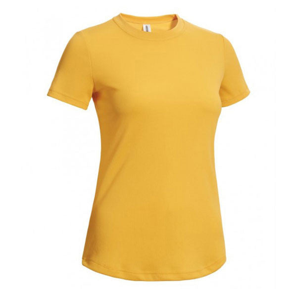 Go the extra mile this summer with Expert's Expert Women's Gold Tec Tee featuring short sleeve crew neck with curved hem. Made from sweat-wicking and 100% microfiber oXymesh fabric, this one will keep you dry throughout workout session. Treated with BodyFreshe tech to minimize bad odors. Curve-complimenting fit promise lasting comfort in this breathable tee. This customizable women's active lifestyle t-shirt offers a highly practical way to show company loyalty and promotes a healthy lifestyle among recipients. Our quick and efficient service will customize this T-shirt with the logo or message of your business.The minimum order for this product is 12 pieces.