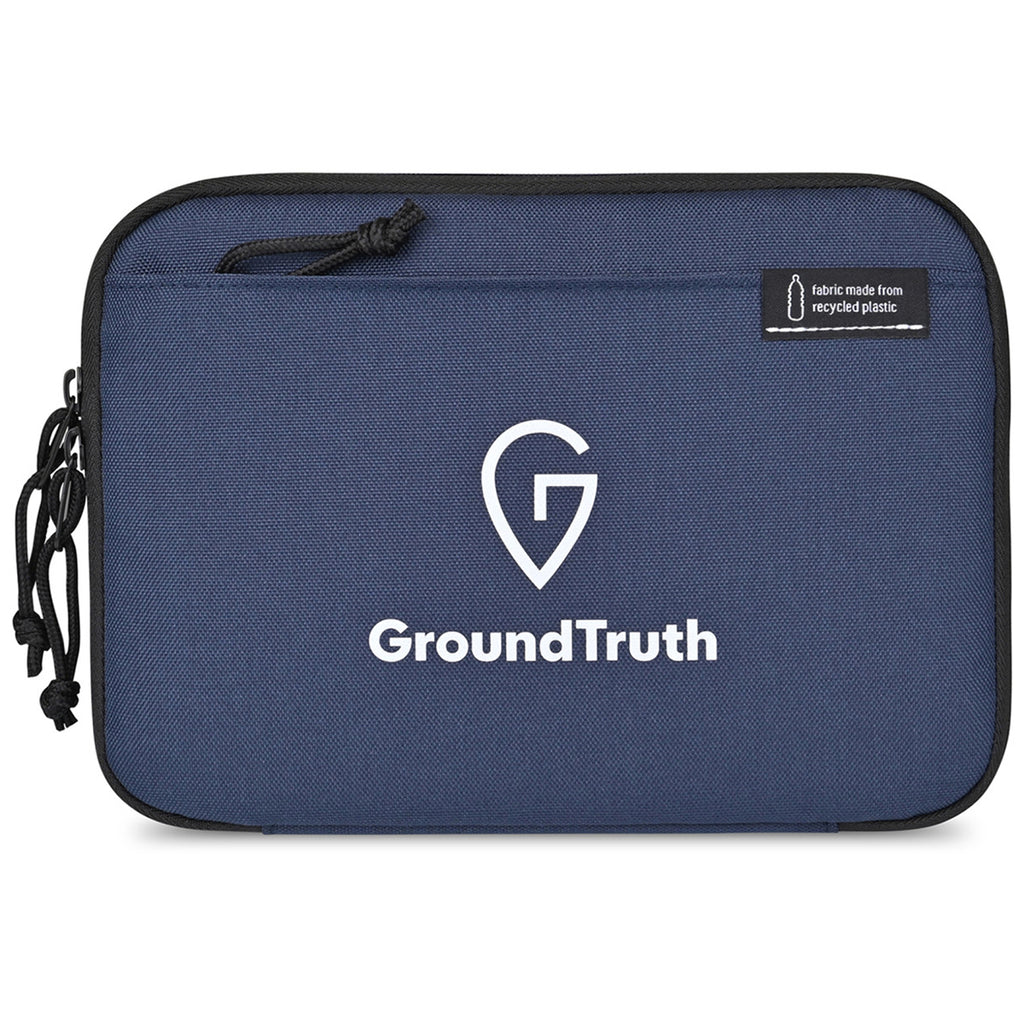 Stay organized with a custom Gemline Navy Renew rPET Slim Tech Organizer in black or navy. For those who use tech often, this holder made from recycled fabric and webbing is a must-have. The zippered main compartment, two slash pockets, and an interior mesh pocket keep cords, chargers, and small tech safe and organized. Great as a gift or promotional item.