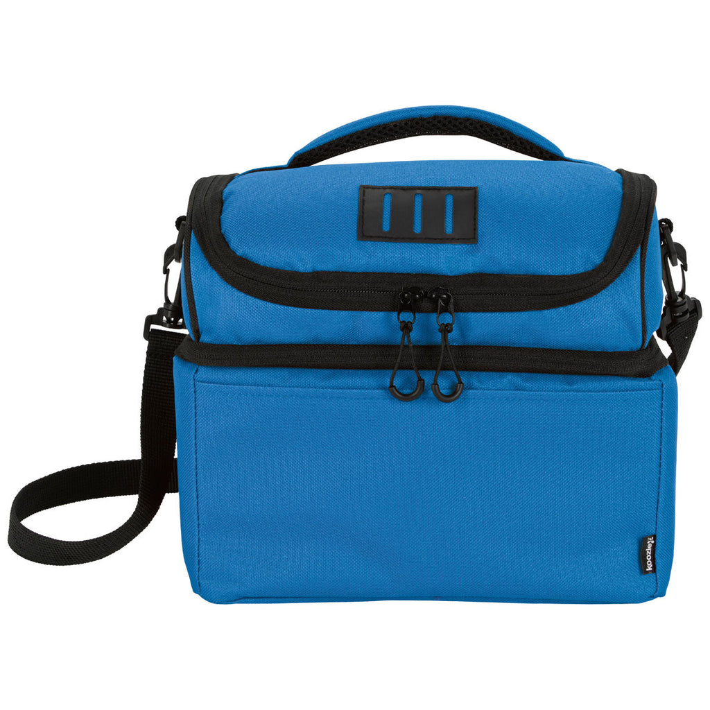 Enjoy a custom Koozie Royal Rogue Lunch Kooler with heat transfer design each day or as an item available in your store. The well designed lunch Kooler has two sections. The lower section is larger and great storage for lunch food items and the top rounded section with a separate zippered opening is great for a drink or heavier items. A clip on strap makes it easy to carry this bag on the shoulder and a top carry handle means you can grab and go. The insulated interior keeps food at a safe temperature until lunchtime. Add a company logo to the front of the lunch Kooler to use as an event giveaway or employee gift that can be used each day. Place an order now for these versatile lunch bags.