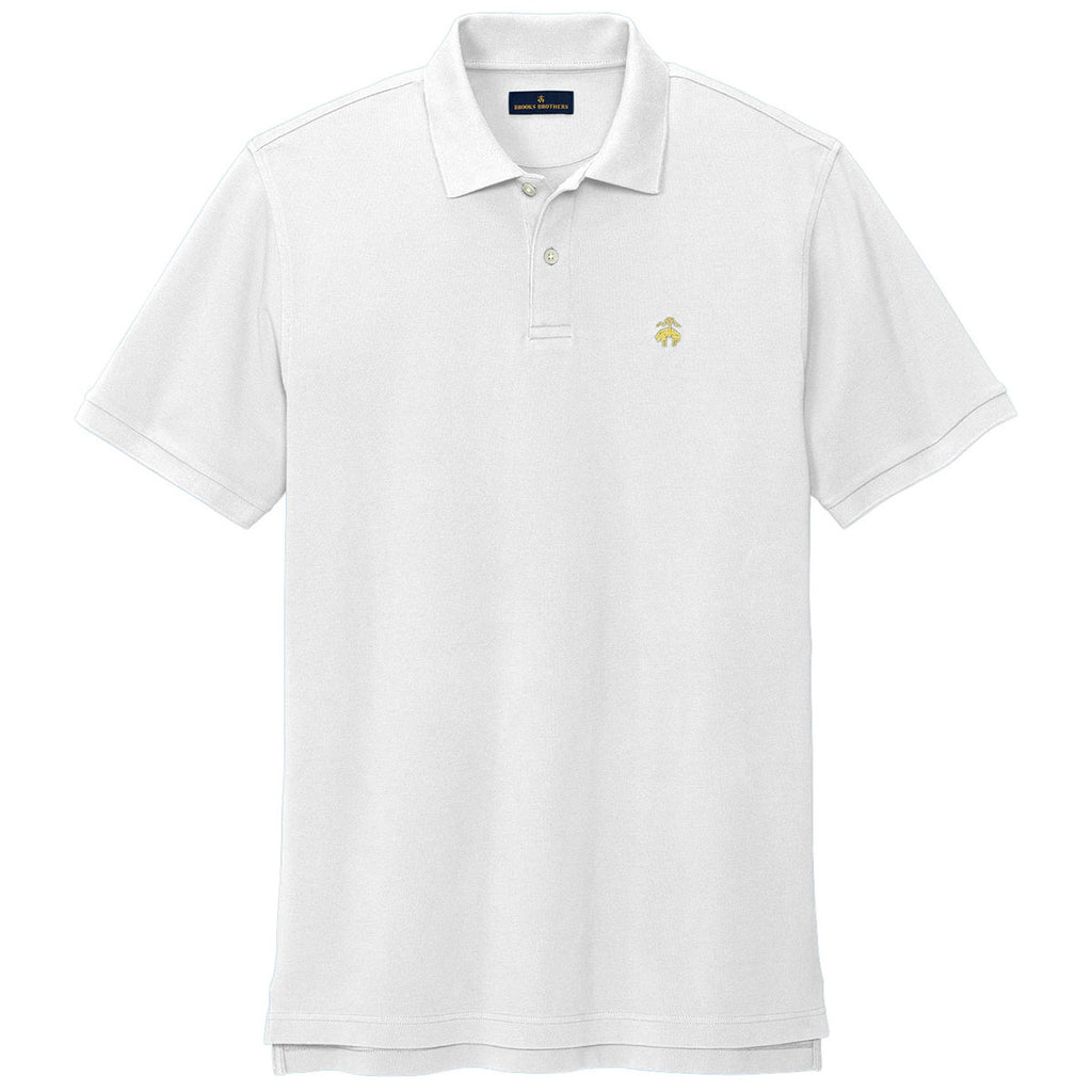 Brooks Brothers Men's White Pima Cotton Pique Polo with custom embroidery is a simple and clean-cut way to help enhance your wardrobe. The Pima cotton and spandex pique fabric will stand up to a hard day's work whether in the office or on the road. Add a company logo to use this polo as a uniform or create something unique to enhance your line. Order today.
