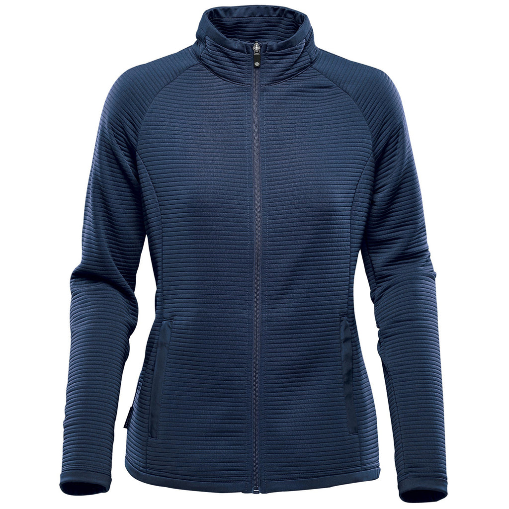 Add a custom logo to the Stormtech Women's Navy Andorra Jacket for an updated classic look in a full front zip design. The simple, two-layer fleece lined jacket offers a flattering fit that can easily go from work to hanging out with friend and chilling around a campfire. Add a custom logo to use as warm-up gear when working out or give as custom gifts to those you care about in life. A company logo will create a nice addition to uniforms to present sleek, clean appearances for employees. Simple, kanga pockets keep small items secure.Corresponding Men's Style:Stormtech Men's Navy Andorra Jacket