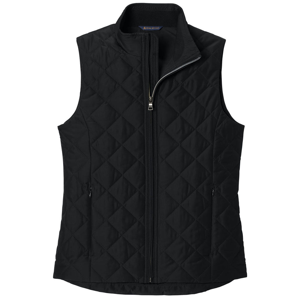 The Brooks Brothers Women's Deep Black Quilted Vest offers timeless style with corporate-ready branding opportunities. Its lightweight insulation provides warmth without bulk, making it ideal for layering in any season. Custom embroidery highlights company logos with sophistication, ensuring a polished finish. Perfect for employee apparel, executive gifts, or branded events, this vest combines elegance, comfort, and professional visibility.