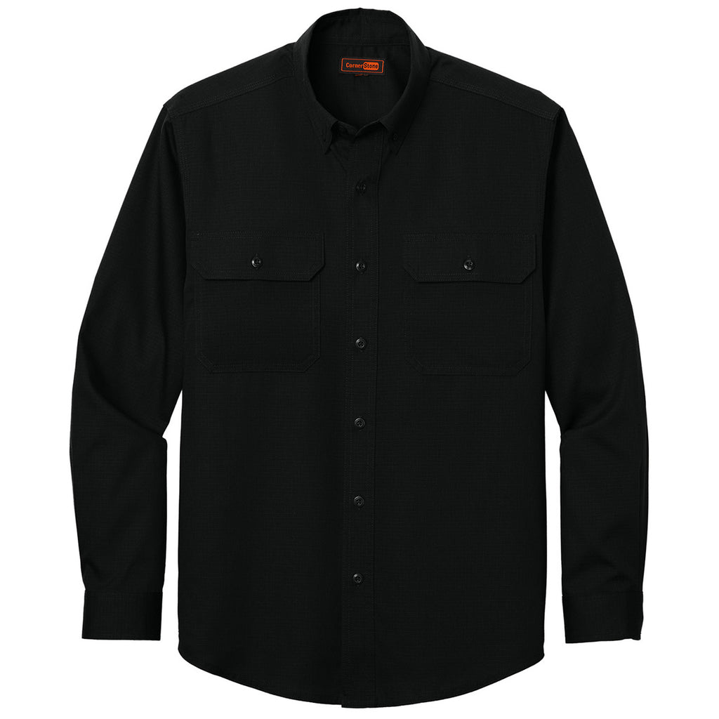CornerStone Men's Black Long Sleeve Select Ripstop Shirt
