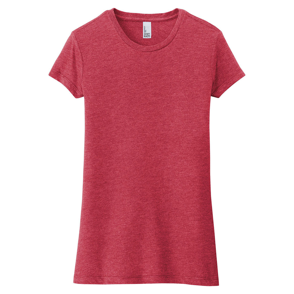 Designed with a form fitting fabric, the custom printed District Women's Red Frost Fitted Perfect Tri Tee always ensures you put your best fashion foot forward. Polyester and rayon combine to create a fabric that resists the types of rips and tears that send other styles of tees to the fashion sidelines. With cotton added to provide smooth comfort, you have discovered corporate apparel that covers all the fashion bases. Add your corporate logo to connect with professional peers at corporate recreational events. Hand out the tee to employees for apparel to wear at industry functions.Highlights
