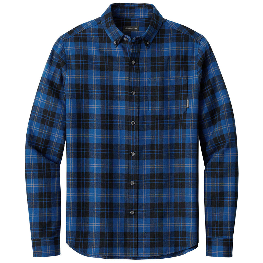 Add a custom logo to the Iconic Eddie Bauer Men's Cobalt Tartan Long Sleeve Favorite Flannel Plaid Shirt for a heritage look that is ready for adventure at home or in the wilderness. This high-end shirt features a button-down collar, mitered chest pocket, and cuffs to create a whole look. Place your order right away for this shirt.