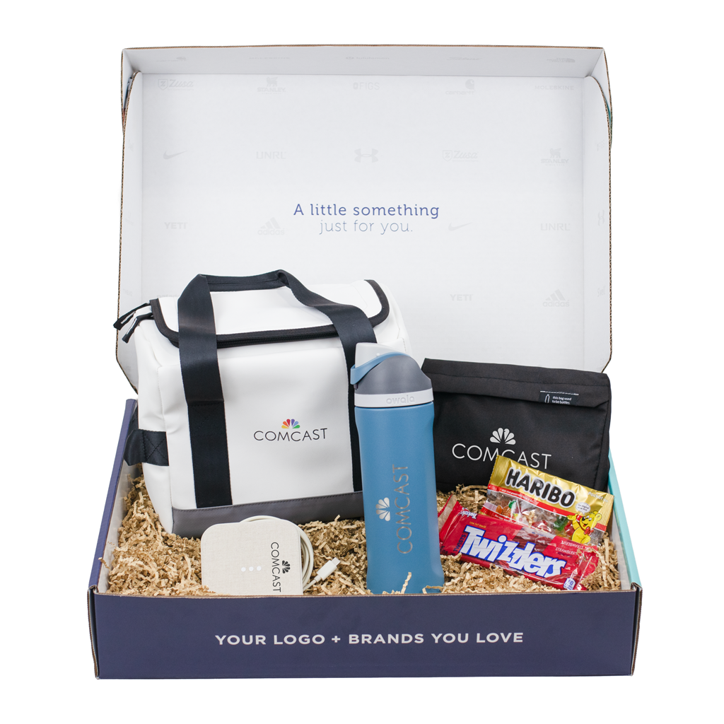 Nothing boosts employee morale or conveys appreciation quite like a thank-you gift! With the Thanks a Bunch MerchBox, you have all the elements of a complete gift in one place. Support healthy lifestyles with the custom Owala FreeSip water bottle and the branded Stormtech Tundra Cooler Pack. Help them recharge with the custom Courant Essentials Catch:1 and the logo-printed Gourmet Expressions “You're Appreciated” Sustainable Snack Pack! This carefully curated gift box will make a lasting impression.
